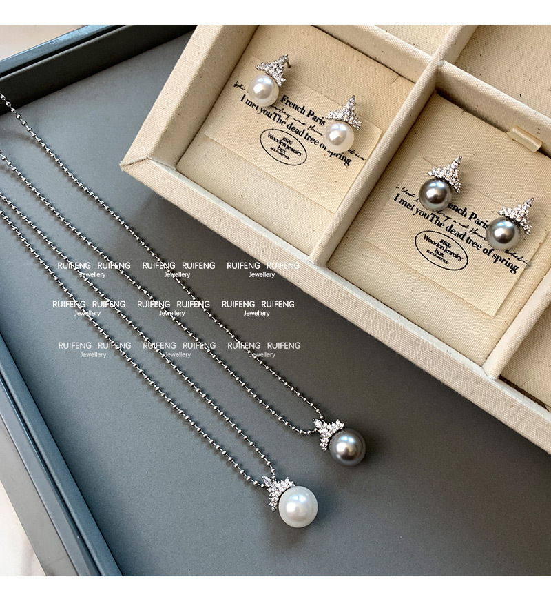 White Pearl Earrings&Necklace Female Ice Queen Crown Necklace Light Luxury High-end Collarbone Chain Neck Chain